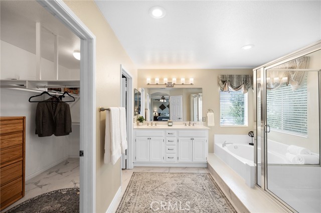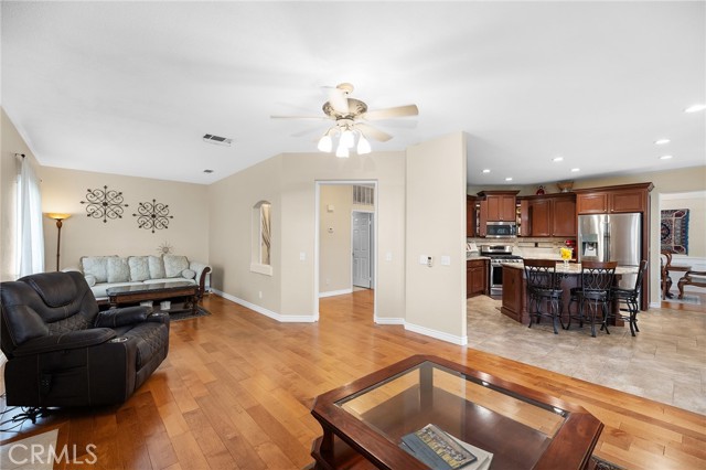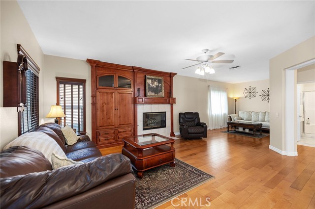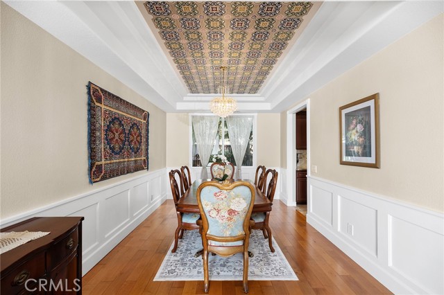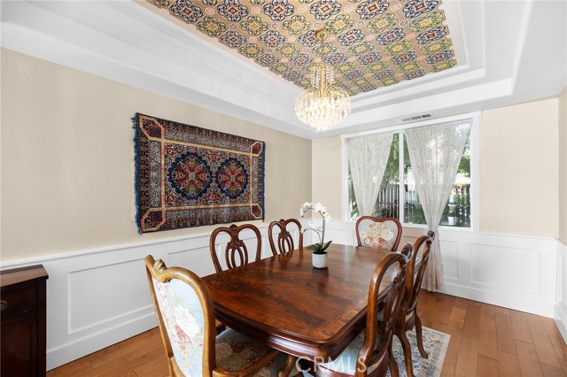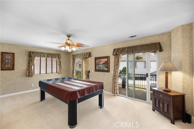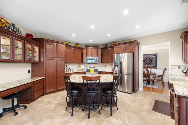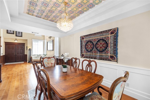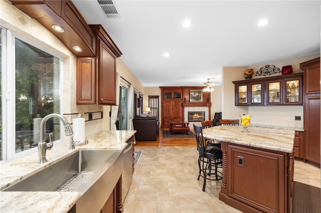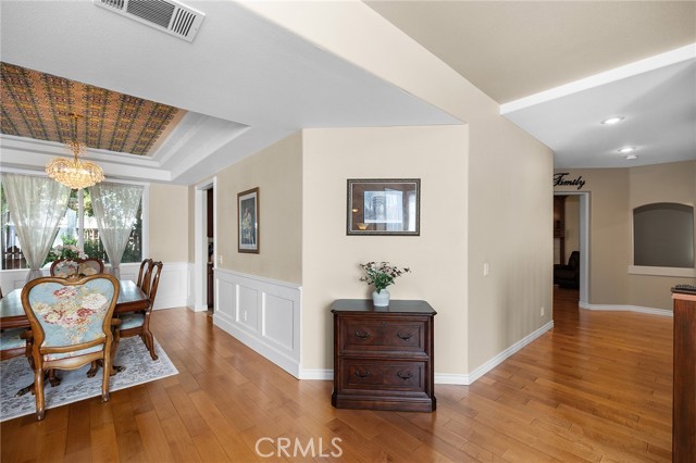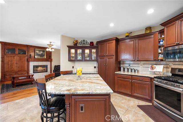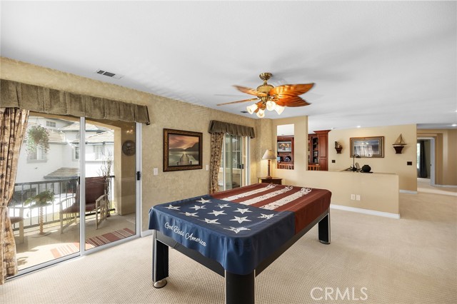 Welcome to this beautifully maintained 4-bedroom, 4-bathroom home with a 3-car garage, tucked away at the end of a quiet cul-de-sac in one of Murrieta’s most peaceful neighborhoods. Lovingly cared for by the original owners, this home blends timeless craftsmanship with thoughtful updates and family-focused comfort. The open living room showcases a stunning two-story Venetian plaster accent wall, tall windows framed with custom woodwork, and a breathtaking $40,000 custom-built second-floor library visible from below. The spacious kitchen features custom cabinetry, granite counters, stainless steel appliances, a Brizo faucet, pull-out spice racks on both sides of the oven and microwave, pull-out storage on both sides of the kitchen sink, a double trash pullout, under-cabinet lighting, and a lighted glass display cabinet. The dining room offers a coffered ceiling and crystal chandelier, while the expansive family room provides flexible space for entertaining or relaxing. Brand new hardwood flooring was installed downstairs in 2023, adding warmth and elegance throughout the main level. The main floor includes a full bathroom and an area that could easily be converted into a bedroom, ideal for guests or multi-generational living. Upstairs, the impressive primary suite spans the entire width of the home, offering space for a sitting area, gym, or office, and features a generous ensuite with dual sinks, a large soaking tub, and a spacious walk-in closet. The large bonus room includes access to a private balcony perfect for morning coffee or evening sunsets, while the third floor serves as a versatile retreat for creativity, recreation, or movie nights with a large projection wall. Enjoy the private enclosed flagstone courtyard with a split-faced stone wall, built-in fountain, timer-controlled lighting, and custom wrought-iron gates at both the courtyard and side entry. The backyard offers a gas BBQ hookup, mature trees, and lush landscaping for a peaceful outdoor retreat. Each floor has its own dedicated A/C unit for comfort and efficiency. Additional highlights include updated plumbing and electrical with 20-amp outlets in the garage and exterior, a very low-payment solar lease, plenty of storage throughout, and no HOA. Close to parks, top schools, and Temecula Wine Country, this home perfectly balances elegance, warmth, and everyday family living.