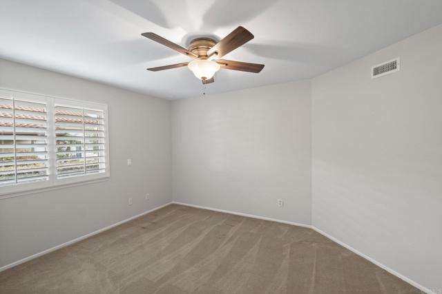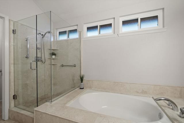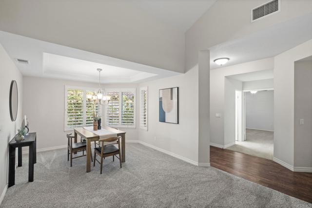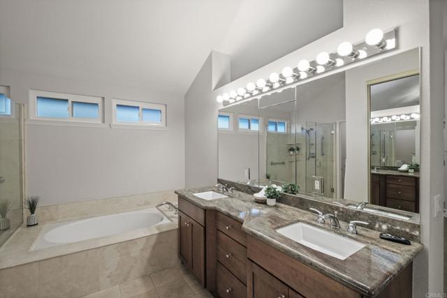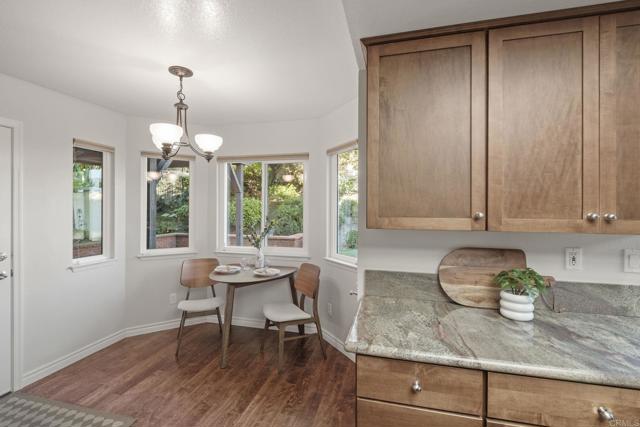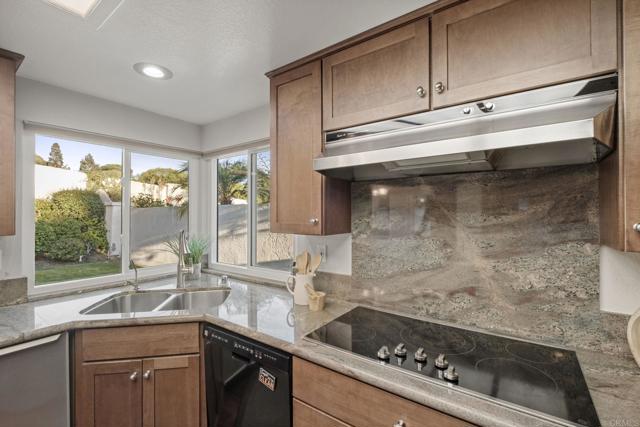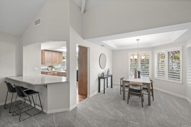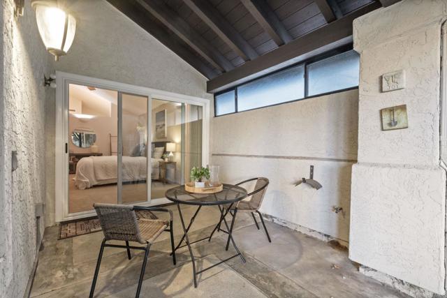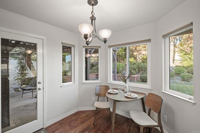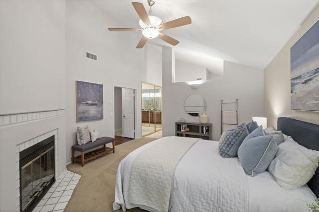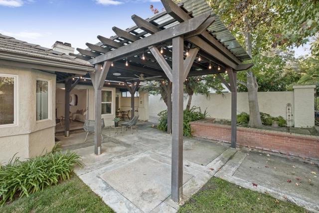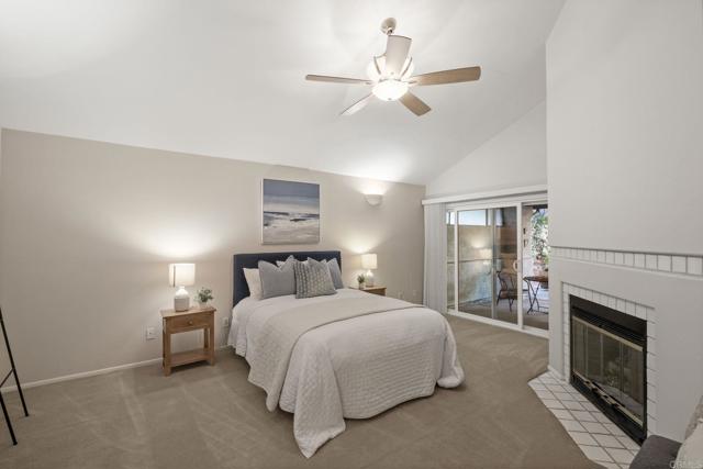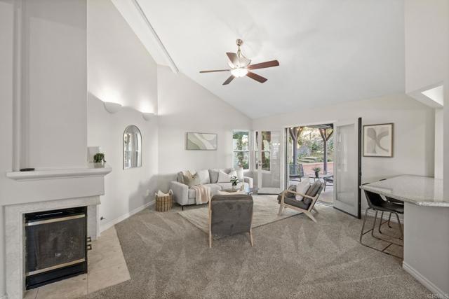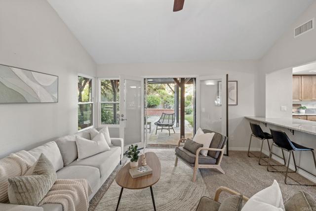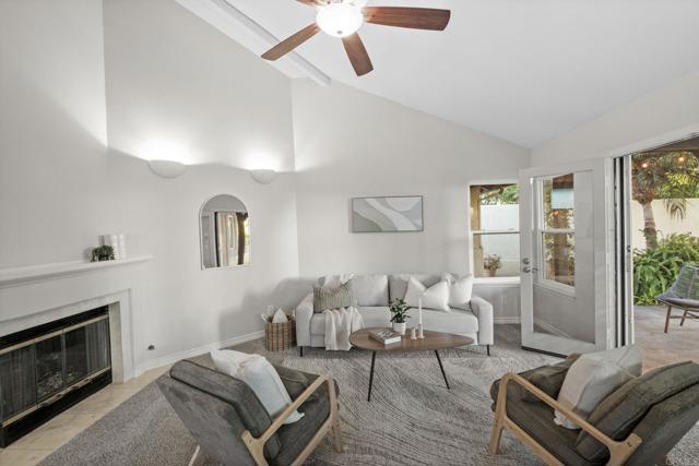 Welcome to Las Vistas! Here is a rare single-story opportunity in one of Del Mar’s most desirable gated communities. This turnkey Plan 1 has 3 bedrooms and 2.5 baths, all on a single level with no stairs. The open concept living area features vaulted ceilings, a cozy fireplace, and separate dining room. The primary suite is a peaceful retreat with vaulted ceilings, its own fireplace, dual closets, and spa-like bath that includes a soaking tub and expansive walk-in shower. The updated kitchen features granite countertops, a built-in ice maker, reverse osmosis water filtration, and a charming breakfast nook. The living room, primary suite, and breakfast nook ALL open to the fully landscaped backyard oasis, complete with mature sycamore trees and a covered patio with custom lighting and ceiling fan – perfect for indoor-outdoor living. Additional highlights include ceiling fans in all bedrooms, newer cabinetry throughout, upgraded windows throughout, and a separate laundry room. The HVAC system was replaced in 2021, and the roof was replaced in 2022 with a 10-year warranty. Las Vistas community amenities include a pool and sports courts, and front yard maintenance. Ideally located just 1.5 miles inland, this quiet and secure community offers super quick access to Dog Beach, Del Mar Fairgrounds, San Dieguito Lagoon, Coast to Crest Trail, Lomas Santa Fe Country Club, and plenty of dining and shopping, including Flower Hill Promenade. Served by top-rated Solana Beach and San Dieguito schools, including Torrey Pines High School.