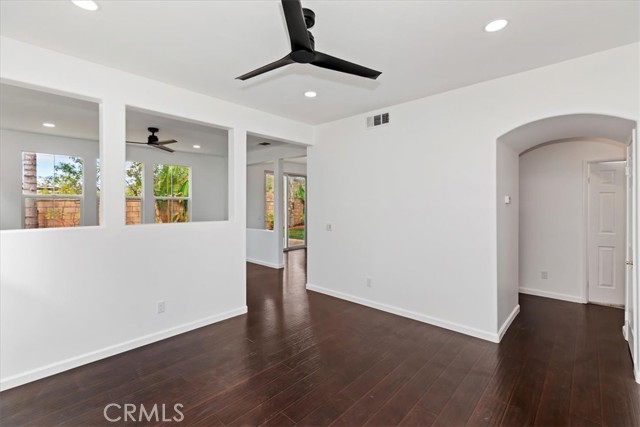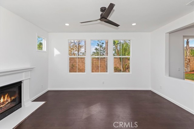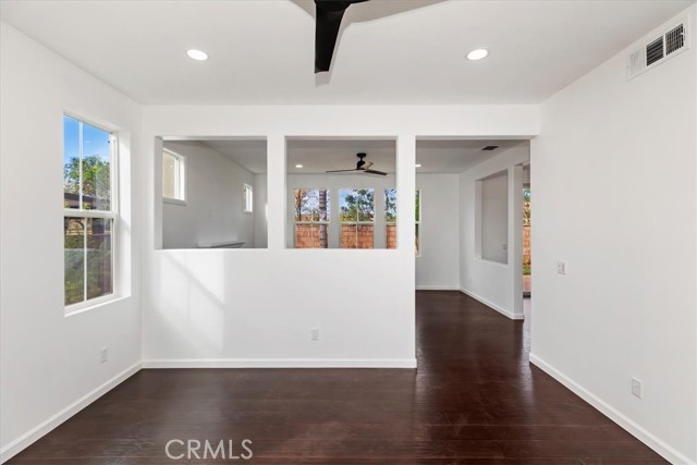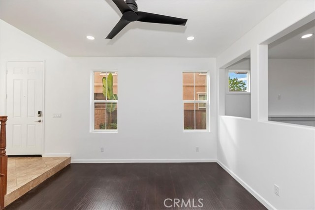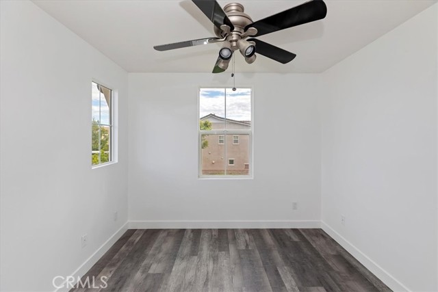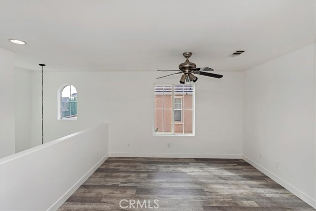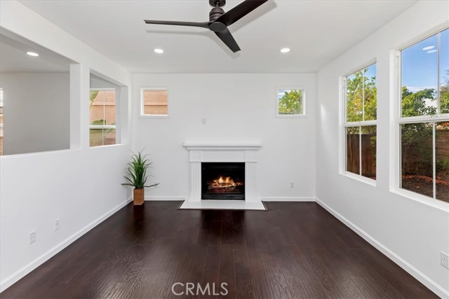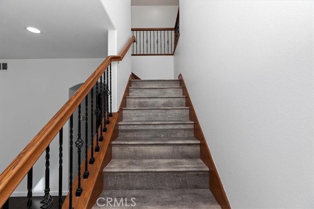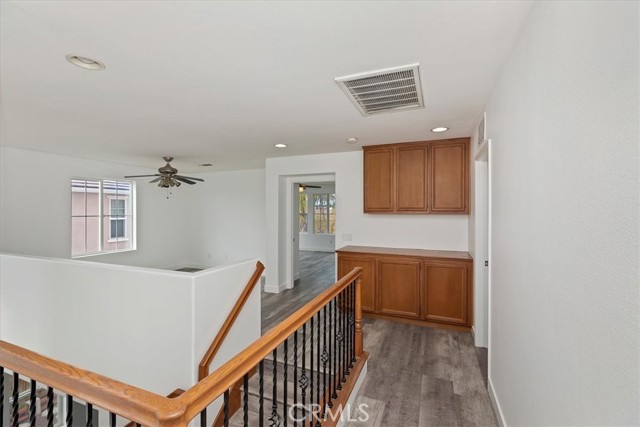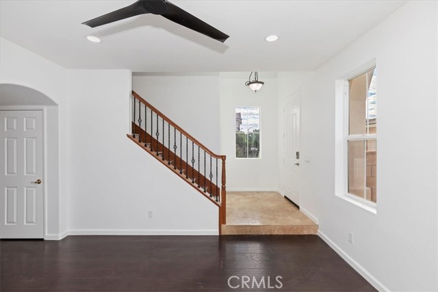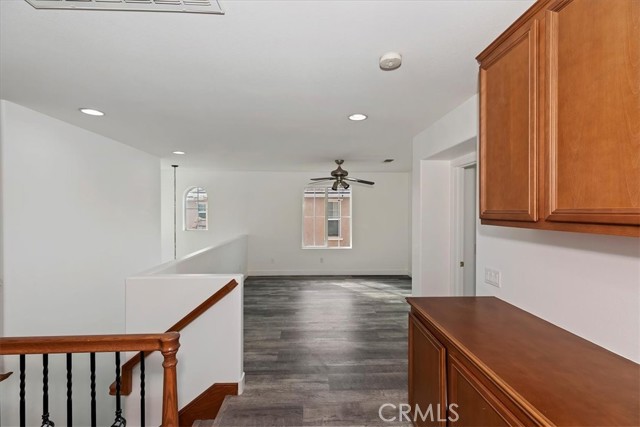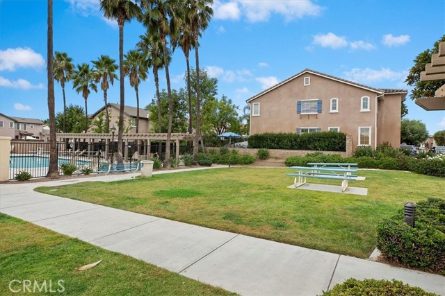 Welcome to this inviting home in the popular Sky Ridge community, ideally located on a private cul-de-sac with no neighbors directly behind or to the side. Offering 3 bedrooms plus a loft (could be turned into a 4th bedroom), 2.5 bathrooms, and a 2-car garage, this 1,950 sq ft residence sits on the largest lot in the neighborhood—providing extra space and privacy that’s rarely found here. The home features brand-new crisp white paint throughout the interior, including doors, baseboards, and trim, giving every room a fresh and modern feel. Inside, you’ll find beautiful wood laminate flooring downstairs that flows seamlessly through the main living areas, adding warmth and durability, while the upstairs features luxury vinyl plank flooring known for its modern look, comfort underfoot, and low-maintenance appeal. Upgraded baseboards and elegant wrought iron stair railings add a polished touch throughout. The spacious family room centers around a stately fireplace, while the kitchen includes warm wood cabinetry, stainless steel appliances with a five-burner stove, and a stainless steel refrigerator that stays. Ceiling fans throughout enhance comfort, and the upstairs loft offers flexible space for work, hobbies, or relaxation. The conveniently located upstairs laundry room includes a washer and dryer that will remain with the home. Outdoors, the large side and backyard offer a pleasant grassy area complemented by fruit trees including orange, guava, lime, pomegranate, persimmon, and calamansi—an ideal setting to enjoy fresh air and a bit of gardening. The garage includes a storage rack, and upgraded outdoor fixtures add to the home’s charm. Residents of Sky Ridge enjoy access to two community pools and spas, a barbecue area, park, and even community RV parking spaces. The HOA also maintains the front yard, making homeownership simple and low-maintenance. Conveniently located near shopping, restaurants, and with easy freeway access, this property represents an excellent value in today’s market—perfect for first-time home buyers and investors alike. Offering a great blend of space, comfort, and convenience, this move-in ready home delivers an easy lifestyle in a welcoming and well-maintained community.