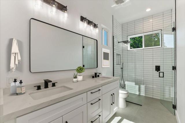 If you want to live in a brand new home just recently built you have found the one! This home is built in an established neighborhood with no HOA. Recent appraisal set the price that it is currently listed at. Local expert builder used high quality upgrades throughout entire home. Elegant 4ft X 4ft Italian porcelain tile flooring. 8 ft. custom shaker doors. High ceilings with LED lighting with switches that have dimmers. Showers are curve less walk-in showers with white subway tiles. Tankless water heater with circulating pump, extra circulating hot water (no waiting for hot water ). Insulation is extraordinary with all exterior walls and also interior walls from room to room. Living room has LED fireplace. Safety sprinklers in ceilings an every room of the home. All walls have 6 inch white baseboards. Windows and sliding doors are Milgard. Kitchen has custom backsplash and custom built hood. Oven is gas. Kitchen, bathrooms and laundry room have quartz countertops. Every room has modern fans already installed. Dryer connection is gas. Garage ready for car charger outlet. House is preset for solar panels if you wish to install in the future. Driveway, courtyard and backyard have amazing looking pavers. Private courtyard in front of house with modern iron fence and beautiful landscape in front of home. Come take a look for yourself and this home will blow away the rest of the houses you've seen. You'll have the most impressive home in the block for sure!