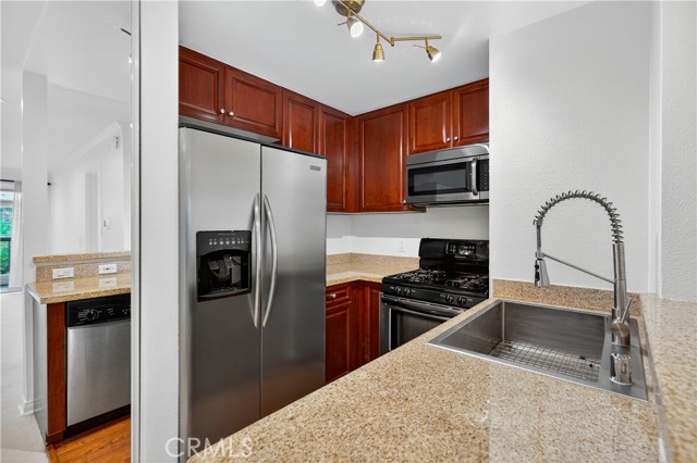 Step into this inviting, sun-drenched corner condo at The Met Warner Center—available for the first time in over a decade! Nestled in one of the community’s most desirable and peaceful buildings, this second-floor residence offers privacy, comfort, and resort-style amenities in a prime Woodland Hills location. The spacious, light-filled layout features a cozy fireplace and a private balcony overlooking the tranquil courtyard—perfect for relaxing mornings or quiet evenings. Upgrades include fresh interior paint, recessed lighting, stylish West Elm curtain rods, stainless steel farmhouse sink, garbage disposal, microwave, brand-new water heater, Nest thermostat, updated door handles, new carpet, and newly painted balcony flooring. Central air and heat ensure year-round comfort. The unit includes two tandem parking spaces and access to community laundry. Enjoy resort-style living with four pools and spas, six tennis courts, indoor basketball and racquetball courts, fitness center, sauna, lush landscaping, 24-hour security, on-site management, and responsive maintenance. Ideally located near Trader Joe’s, Whole Foods, The Village, Westfield Topanga, Ralphs, Sprouts, Target, Costco, and countless restaurants, gyms, and cafes. Warner Center Park—with concerts, fireworks, and community events—is just steps away. Easy access to the 101 freeway and nearby nee developments like the Rams practice field add to this area’s growing appeal. Lovingly cared for since 2014, this bright corner retreat offers a rare blend of style, convenience, and comfort in one of the Valley’s most desirable gated communities.