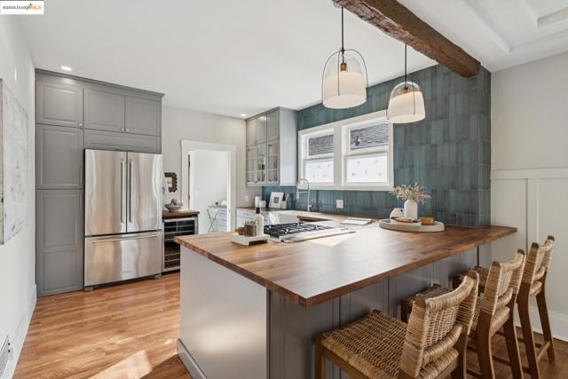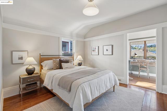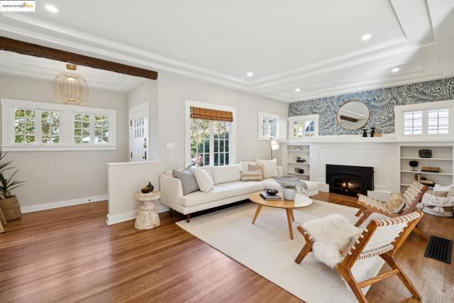 Built in 1911, this quintessential Rockridge bungalow blends timeless charm with modern updates. The home features an open layout ideal for today’s lifestyle where the living room and bright dining area flow into the updated kitchen. The kitchen features a large peninsula with barstool seating, stainless appliances including a Wolf range and plenty of counter space. The adjacent laundry room also acts as a pantry and mudroom with easy backyard access. There are two spacious bedrooms, one includes an adjoining a sunny bonus room—ideal as an office, lounge, nursery or an easy location for a primary suite bathroom addition. Additional features include central heat and A/C, an unfinished basement, and large attic. In the front garden, a parking pad accessed by a shared driveway adds convenience in this coveted location—just moments from BART, Market Hall, Trader Joe’s, and favorite Rockridge shops and cafés.