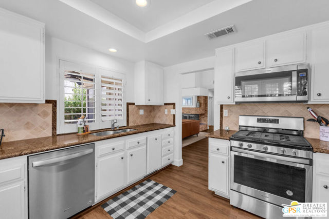 Experience relaxed resort living in the beautiful community of Santa Rosa Cove, just moments from the iconic La Quinta Resort & Spa. This updated 3-bedroom, 2-bath home offers 1,591 square feet of bright, open living space, enhanced by extra windows that flood the living area with natural light, perfect for both entertaining and everyday comfort. The home is offered fully furnished, with a newer ac unit and complete with a golf cart! Just pack your suitcase and move right in. Step outside to the spacious patio, where you'll enjoy a peaceful greenbelt setting, and mountain views, the perfect backdrop for morning coffee or evening cocktails. With pools, tennis, and gated security, plus direct access to the La Quinta Resort's shops, dining, and golf, Santa Rosa Cove is one of the desert's most welcoming and well-located communities. See what makes this home so special and schedule your private tour today!