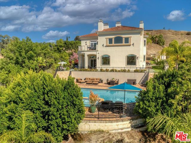 Discover 360 degree panoramic views, timeless elegance and endless possibilities in this grand Mediterranean-style estate. Offering spacious en-suite bedrooms, each a private retreat with its own bath perfect for multigenerational living, frequent guests, or a seamless work-from-home lifestyle. Bathed in natural light and featuring dramatic high ceilings, the home's open layout is both impressive and inviting. Large windows and doors frame sweeping views, offering a beautiful backdrop to everyday life and entertaining alike. Designed for those who love to host, the home features a thoughtful flow between formal and informal living spaces, with room to gather, relax, or retreat in comfort. A fully separate living space ideal for extended family, long-term guests, or a private office adds versatility and privacy. While the home retains the charm and warmth of Mediterranean architecture, it also offers the opportunity to refresh and personalize with your own modern touch. The setting is already spectacular, with a beautiful vantage point overlooking scenic views the perfect foundation for your dream home! Whether you're seeking space to entertain, room to grow, or a peaceful retreat for your family, this estate delivers grace, scale, and a setting that truly inspires. BONUS ALERT: Two Bedroom ADU attached.