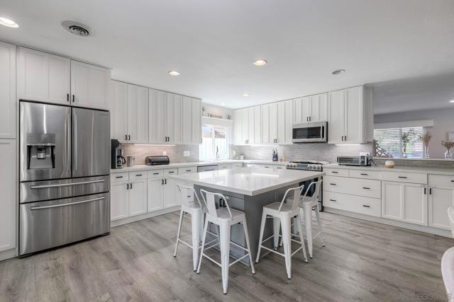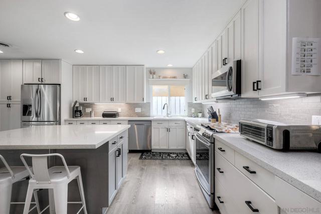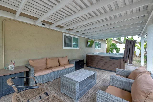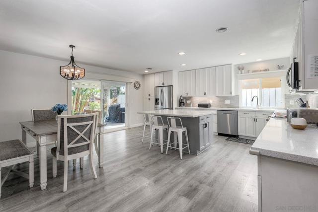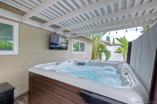 Step into single-story comfort in the heart of a highly sought-after East County neighborhood in Santee. This meticulously maintained 3-bed/2-bath residence spans approximately 1,312 sq ft and features paid solar—yes, you read that right—bringing real energy savings and fewer monthly worries. Vinyl plank floors echo throughout, offering durability and style. The brand-new kitchen dazzles with shaker-style cabinetry, quartz countertops, and stainless steel appliances ready for your next culinary creation. A wood-burning fireplace anchors the living room, adding classic warmth and a focal point for cozy evenings. Step outside under the covered patio, pour a glass of wine into the jacuzzi, and unwind while you watch your favorite film or simply enjoy the evening air. In the surrounding area, you'll discover why Santee continues to charm: an abundance of parks, walking trails, and open spaces invite active living and connection with nature. Shopping and dining are just minutes away in the Town Center area, making errands quick and schooling solid for families. With easy access to freeways and commuter corridors, you'll be connected to greater San Diego while still enjoying the relaxed suburban lifestyle. This home is truly immaculate—inside and out—ready for its next chapter. Whether you're downsizing, growing your family, or simply stepping into your dream starter, this one hits all the marks. Don't miss this opportunity to combine modern upgrades with the timeless appeal of a single-level, well-cared-for home in a location that consistently delivers.