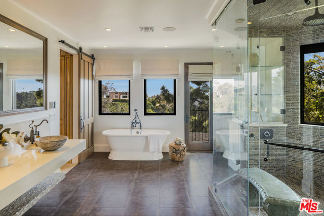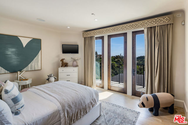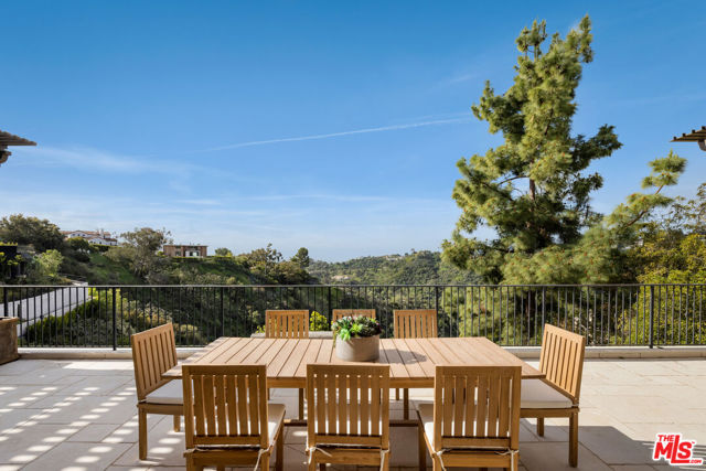 A stunning Tuscan-inspired estate, nestled in upper Bel-Air, across three levels with breathtaking canyon views and peekaboo ocean views. This 6-bedroom villa features a stunning two-story grand foyer, limestone floors, and timeless architectural details throughout. An elegant private elevator connects the three main floors, leading to a refined home office and gym, each with its own half bathroom. Expansive living spaces throughout the home are ideal for entertaining, indoors or outside. The chef's kitchen opens to the outdoor dining and a full outdoor kitchen. Warm stone textures, arched doorways, and custom woodwork evoke the romance of the Italian countryside. The three-car garage offers ample space, while lush outdoor terraces invite you to relax and unwind.