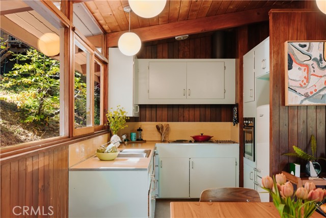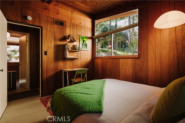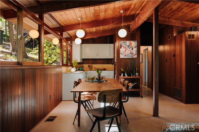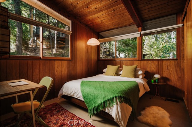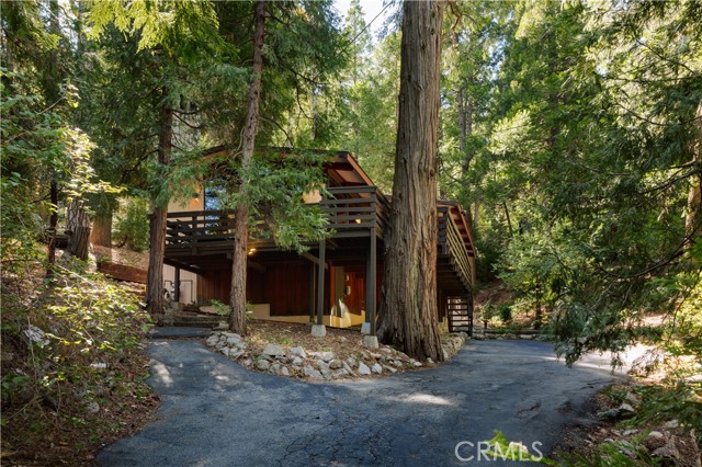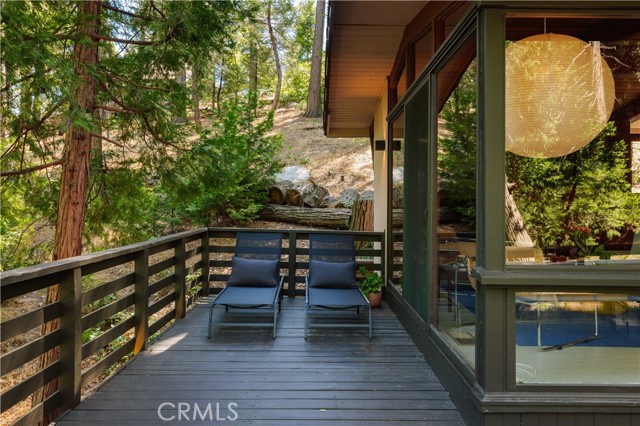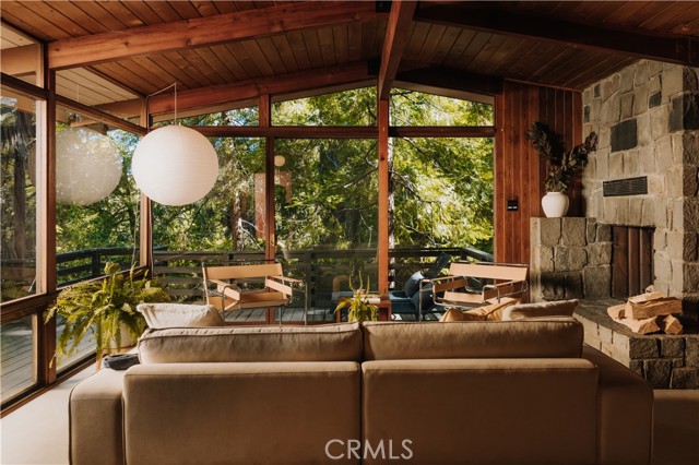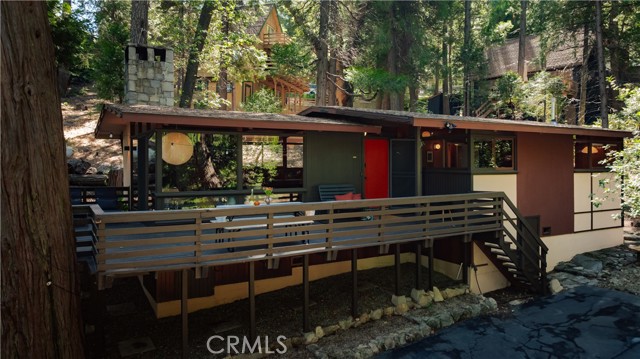 Mid-Century Holiday Retreat in the Pines – San Moritz, Crestline A rare opportunity to own a true mid-century gem tucked among the towering pines of Crestline’s sought-after San Moritz neighborhood. Built in 1956 and thoughtfully updated, this architecturally distinct cabin blends classic design with modern sophistication—creating a retreat that feels both timeless and luxurious. Set back from the road on a generous, tree-filled lot, the home’s open-concept interior is bathed in natural light through floor-to-ceiling windows that span two walls, blurring the line between indoors and out. The surrounding forest becomes a living backdrop, creating the serene sensation of being immersed in nature—even while inside. The original stone fireplace anchors the living space, while the spacious deck extends the experience outdoors, perfect for entertaining or quiet mornings among the trees. Every detail has been carefully curated—from eco-friendly Marmoleum flooring and updated electrical with a new panel to a brand-new central heating and air system. Smart features include a Nest thermostat and Ring security system for effortless comfort and peace of mind. Two beautifully appointed bedrooms and a versatile bonus room provide space for guests, a home office, or creative pursuits. Located just three minutes from Lake Gregory and moments from Crestline Village shops and dining, with Lake Arrowhead only 14 minutes away and Los Angeles under 90 minutes, this property offers an ideal balance of privacy and accessibility. A proven 5-star Airbnb, the home is offered fully turnkey with designer furnishings—ready to enjoy immediately as a refined mountain retreat, vacation rental, or full-time residence.