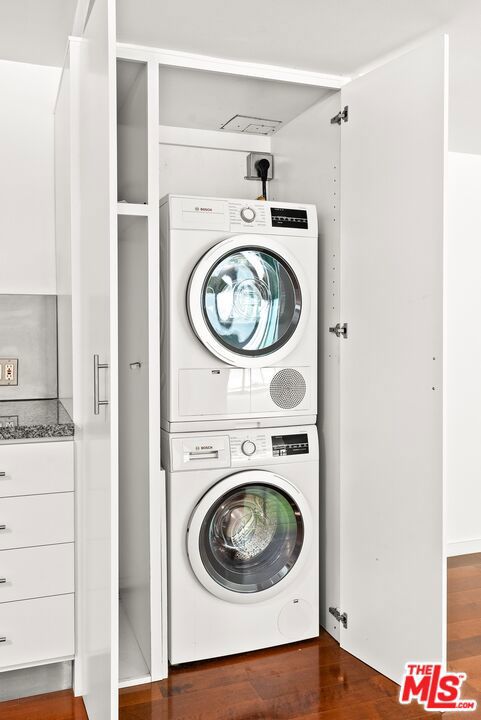 Natural light and ocean breezes fill this contemporary one-bedroom residence in the prestigious Oceanaire building designed by architect A. Quincy Jones. This modern home features an open floor plan with walls of glass, wood floors, and floor-to-ceiling sliding doors that connect to a spacious private patio, ideal for relaxing or dining outdoors. The kitchen includes stainless steel appliances, granite countertops, and an open dining area. Additional features include in-unit laundry with washer and dryer, two parking spaces, and a storage unit. Residents enjoy access to an elegant lobby, fitness center, conference room, Zen garden with fire pit, and 24-hour doorman service. Ideally located near the Third Street Promenade, Ocean Avenue dining, Montana Avenue boutiques, and Palisades Park. Property has been virtually staged.