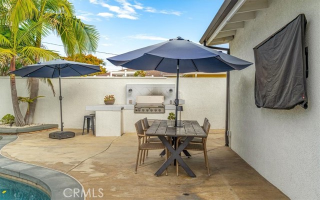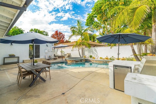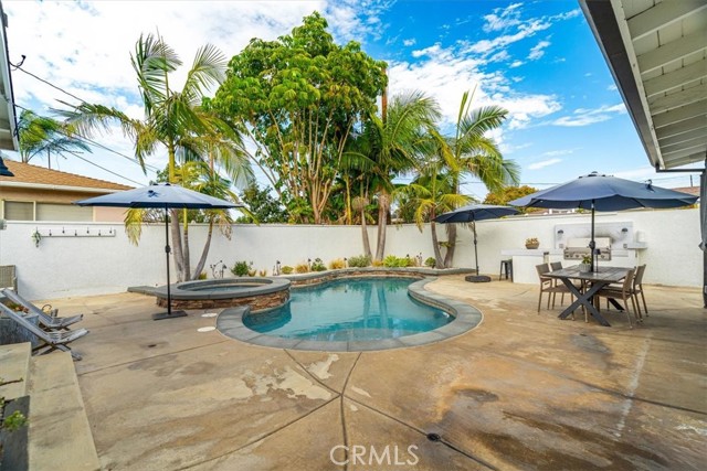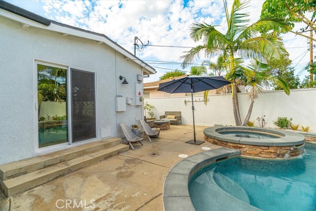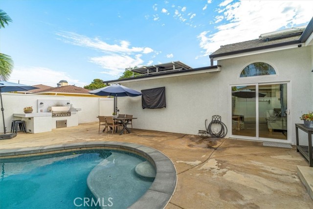Stunning Los Altos Home – Corner lot, Pool, Solar & Style!!!! WELCOME to this beautifully remodeled 3-bedroom, 2-bath home in the highly desirable Los Altos neighborhood of Long Beach. Offering 1,788 sq. ft. of thoughtfully designed living space, this residence blends modern upgrades with timeless charm. Step through the stunning Dutch door into a bright, open floor plan featuring lovely hardwood floors, cozy fireplace w/custom Mantle, crown molding, and custom built-ins. The kitchen is a true showpiece with concrete countertops, updated appliances, and a built-in dining bench—perfect for casual meals and conversation. The kitchen/dining area flows seamlessly into the family room, which showcases cathedral ceilings, custom built-ins and an abundance of natural light, creating the perfect setting for both relaxing and entertaining. Every detail has been tastefully curated, including an upgraded electrical panel, paid-off solar panels, recessed lighting, custom plantation shutters and high-quality finishes throughout. Step outside to your own private backyard oasis, complete with a sparkling in-ground pool, spa, and barbecue island—ideal for gatherings and warm California evenings. A side yard provides extra space for pets or play, and the corner lot adds both privacy and curb appeal. An attached two-car garage completes this exceptional property, located near top-rated schools, parks, shopping, and dining. Experience the perfect balance of comfort, style, and convenience in this Los Altos gem.