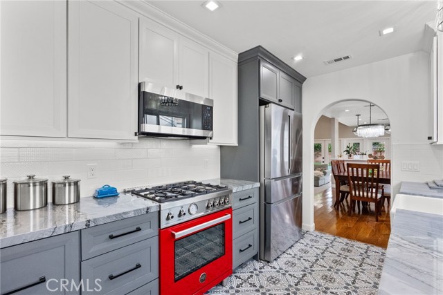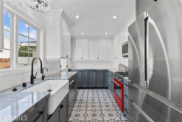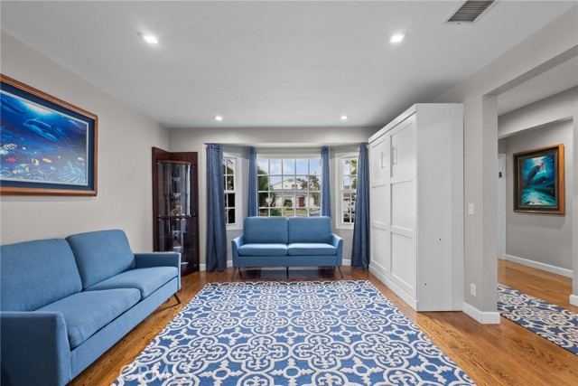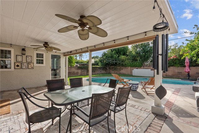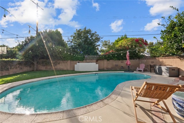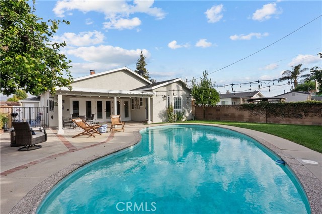 Welcome to 1903 N Screenland Drive, a beautifully reimagined pool home in one of Burbank’s most coveted neighborhoods, where timeless character meets modern luxury. Every inch of this 1,850 sq ft residence has been thoughtfully designed for comfort, elegance, and effortless California living. From the moment you enter, natural light pours through the front bay window, filling the formal living room with warmth. Gather around the cozy gas fireplace with its stylish tile and solid wood mantle, or host guests with ease thanks to a cleverly tucked-away Murphy bed that blends function with sophistication. The designer kitchen, renovated in 2020, is a showpiece and features stone countertops, a classic Shaw porcelain farmhouse sink, two-tone custom cabinetry, and premium appliances including a striking Ferrari red Italian Bertazzoni oven and microwave, plus a Bosch refrigerator and dishwasher. Toward the back of the home, the spacious family room offers vaulted ceilings, new carpeting, and a built-in wet bar, making it ideal for movie nights, celebrations, or simply relaxing at the end of the day. The primary suite is a private retreat with vaulted ceilings, a walk-in closet, and a spa-like bathroom featuring a frameless glass shower, dual-sink vanity, and a soaking tub. Two additional bedrooms and a beautifully renovated hallway bathroom, completed in 2024, provide stylish comfort for family or guests. Step outside and discover your own backyard paradise with a sparkling in-ground pool surrounded by lush greenery and three mature orange trees, perfect for enjoying fresh-squeezed juice on sunny mornings. A covered patio creates an inviting space to watch the games with friends or simply unwind outdoors. A newly updated sprinkler system keeps both front and back yards pristine with ease. Additional highlights include updated electrical and copper plumbing, a newer roof, tankless water heater, fresh exterior paint, and hardwood floors throughout. Located near Warner Bros. and Disney Studios, the charming cafés and boutiques of Magnolia Park, the Chandler Bike Path, Porto’s Bakery, and vibrant Downtown Burbank, this home offers the best of convenience, community, and classic Burbank charm. Come see why life on Screenland Drive is so special. This is the Burbank lifestyle at its finest.