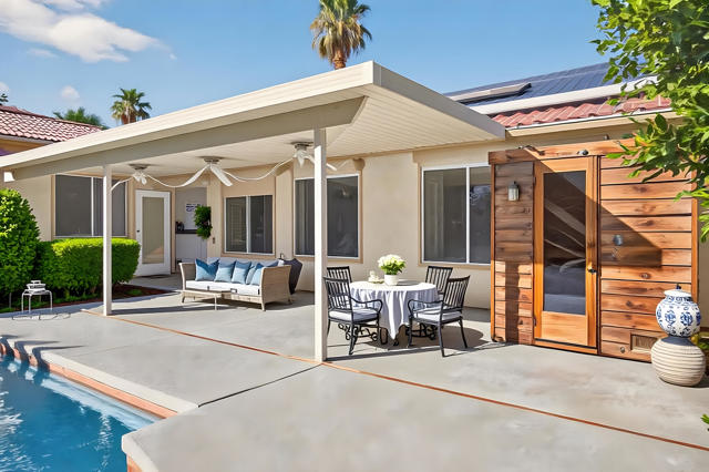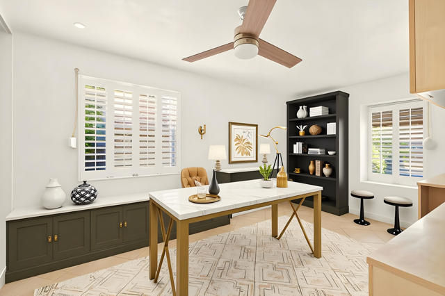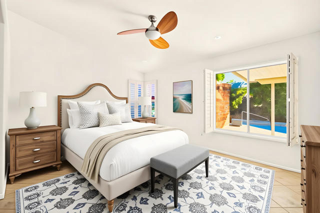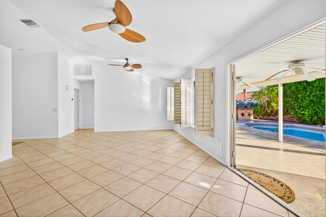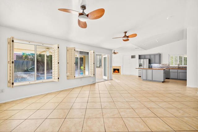 Rarely available Kaufman Broad home with pool,spa and solar. 4th bedroom was converted to a den/office.Vaulted ceilings, 17 inch porcelain tiles, and open floor plan.Kitchen and bathrooms have slab granite counter tops.Note: House is vacant, photos with furniture are virtually staged.