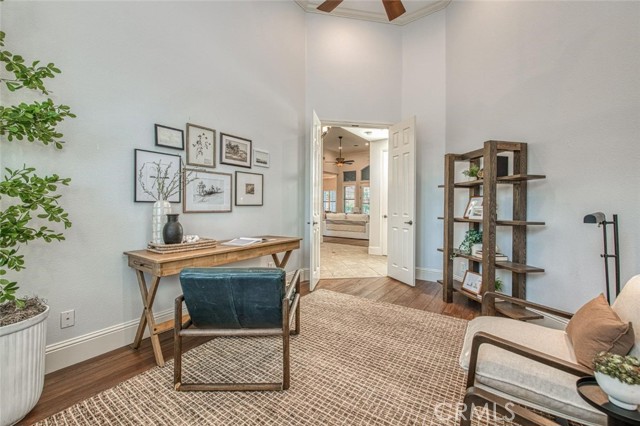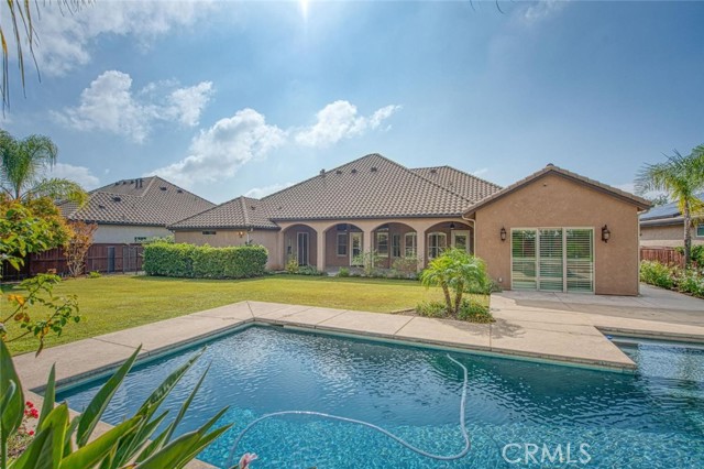 Set in the heart of Harlan Ranch, this Image-built residence marries timeless craftsmanship with contemporary comfort. Recently renovated, the home offers 5 bedrooms and 3 baths across approximately 3,759 square feet of beautifully balanced living space, each detail thoughtfully curated to invite light, ease, and elegance. A grand entryway opens into the living room, where high ceilings and expansive windows bathe the interiors in natural light. The seamless transition to the kitchen underscores the home's open-concept design, creating a space equally suited to quiet mornings or lively gatherings. Anchored by a striking Quartzite island, the kitchen showcases a professional-grade Wolf range, Sub-Zero refrigerator, and custom cabinetry designed with both form and function in mind. In addition to the generous living spaces, the home features a dedicated officeperfect for working from home or creative pursuitsand a versatile bonus room that can serve as anything from a home gym to a crafter's dream studio. Throughout the main level, tile and hardwood floors offer a sense of continuity and sophistication. The primary retreat redefines comfort, complete with a private fireplace, plantation shutters, and dual walk-in closets with custom built-ins. The en-suite bath evokes a spa-like tranquility, featuring new Quartzite counters, dual vanities, a jetted soaking tub, and a spacious two-person shower lined with fresh tile. Beyond the interior, the backyard unfolds as an entertainer's paradise: a lengthy covered patio overlooks a sparkling pool framed by mature landscaping and an open expanse of lawn. A wrought-iron gated dog run and 40+ owned solar panels with no true-up to date reflect the home's blend of practicality and luxury. At Harlan Ranch, residents enjoy access to parks, walking trails, and community spaces that encourage an active, outdoor lifestyleperfectly complementing the serenity of home.