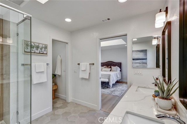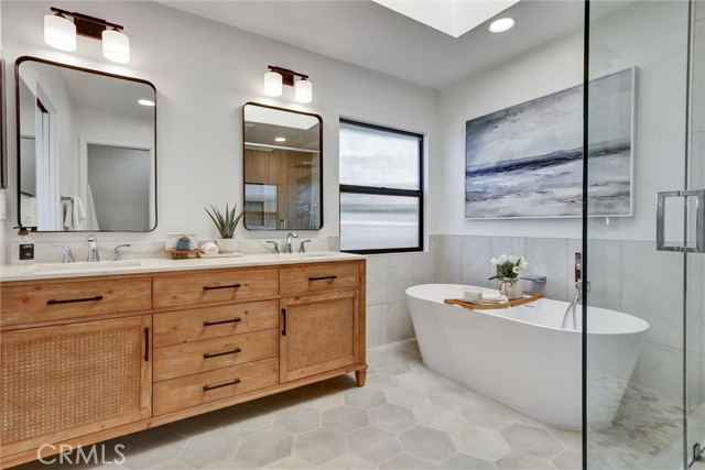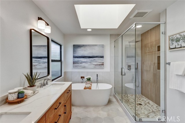 Modern coastal elegance in a prime La Jolla location! Tucked on a quiet street, this stunning single-story home sits on a spacious ~9,900 sq ft lot with 5 beds, 3 baths (incl. bonus suite) and approx. 2,847 sq ft of beautifully remodeled living space. New kitchen features Shaker-style soft-close cabinets, quartz countertops, countertop-to-ceiling backsplash, under cabinet lights, and stainless steel appliances. New baths, floors, paint, doors, and lighting throughout. The inviting primary suite offers a dual-sink vanity, freestanding tub, and frameless shower. Enjoy skylights, a cozy gas fireplace, peek-a-boo mountain views. Front yard features drought-tolerant landscaping with Wi-Fi–controlled drip irrigation and lighting, while the backyard offers artificial turf for a low-maintenance outdoor living. Finished garage with epoxy floors and long driveway. Brand-new energy-efficient heat pump HVAC system and ducts. New Dual Paned Windows. No HOA. Minutes to beaches, UCSD, and top-rated La Jolla schools. Link to video & 3D Matterport & more info: (https://blueskypixs.hd.pics/5515-Thunderbird-Ln/idx)