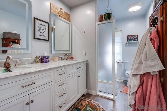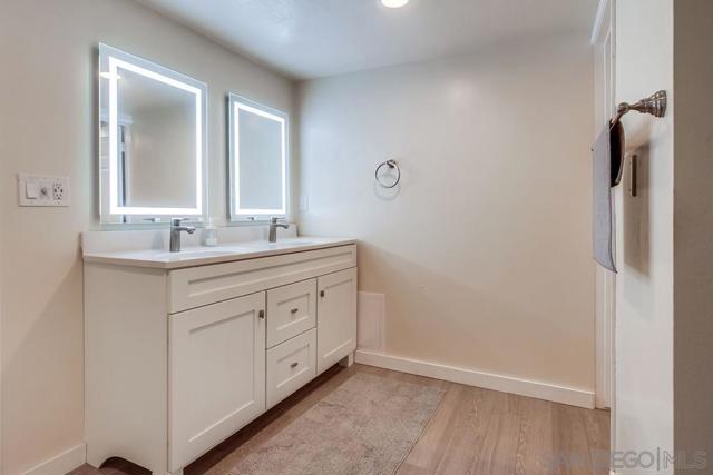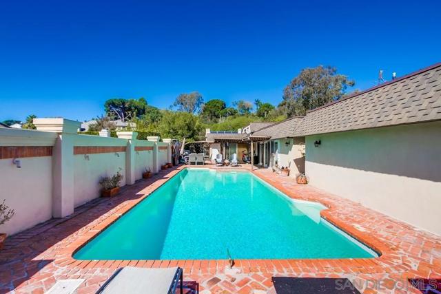 Beautifully Upgraded La Jolla Home in Prestigious Muirlands West. Nestled on a corner lot this stunning Spanish-style single-level home blends timeless charm with modern upgrades. Offering 4 bedrooms, 3.5 bathrooms, and a 3-car garage, the property sits on an expansive nearly 20,000 sq. ft. lot surrounded by lush landscaping. From the manicured front yard, enter into a serene quiet retreat where natural light fills every corner through dual-pane windows, sliders, and skylights. The open and spacious floor plan provides a quiet, tranquil feel throughout. The heart of the home is the inviting 30’ x 25’ great room featuring a sprawling brick wood/gas-burning fireplace, beamed ceilings, crown molding, and direct access to the upgraded kitchen. The chef’s kitchen boasts gleaming quartz countertops, a subway tile backsplash, sleek white shaker cabinets—some with glass-fronts—stainless steel appliances, a double oven, three lazy Susans, a spice rack, pull-out pantry drawers, and a large movable center island with a server cut-out. A charming desk nook and pass-through serving window to the backyard make this space perfect for entertaining. Additional upgrades include luxury vinyl plank flooring throughout, recessed lighting, several mini-split A/C and heating units, OWNED 72 solar panels, upgraded electrical and plumbing, custom stained-glass windows, integral blinds in select windows and sliders, and a dedicated laundry room just off the great room. The living room opens directly to the patio for easy access to the outdoor oasis. The bathrooms have been tastefully remodeled The bathrooms have been tastefully remodeled with marble vanities, lighted mirrors, brushed nickel fixtures, and newer tub/showers, including one with a relaxing jetted jacuzzi tub. Outside, the private backyard offers a large pool and spa surrounded by a timeless brick patios, multiple pergolas, mature greenery, raised garden beds, artificial turf, and brick-lined walkways. A separate side yard on the south side of the garage provides ample space for a RV (with RV cleanout) or boat parking. Ideally located near Mt. Soledad and within walking distance to some of La Jolla’s top-rated schools, this home is minutes away from Wind-and-Sea Beach and a quick five-minute drive to the Village of La Jolla. Family-owned for over 50 years, this exceptional property is ready for its next chapter—awaiting new owners to make it their own.