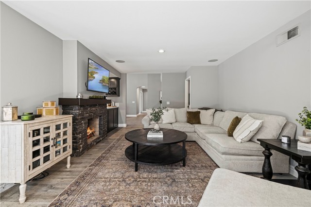 Updated single story ranch home in the sought after Fairview Estates community of Corona. This 3 bedroom, 2 bath property blends comfort, function, and convenience, ideally on a quiet street adjacent to Norco and within walking distance to Starbucks, Fairview Park, and local shopping. The home sits on a generous 9,148 square foot lot and features RV parking with full hookups, including a dump station, plus a spacious three-car garage with epoxy floors, built-in cabinets, and reinforced overhead rafters for extra storage. Inside, the home offers a bright, open layout with vaulted ceilings and a seamless flow between the living spaces. The kitchen was remodeled in 2025, featuring new cabinets, quartz countertops, and modern fixtures designed for everyday living and timeless appeal. The generous dining area creates an inviting space for entertaining or relaxing at home. The living room includes a cozy fireplace and an updated wet bar, providing the perfect spot for relaxing or entertaining. Down the hall, you’ll find three well-sized bedrooms. The spacious primary suite is complete with an updated bathroom featuring an oversized walk-in shower and a cedar-lined walk-in closet. Step outside to a private backyard designed for easy living. Enjoy a covered Alumawood patio, glass fire pit, large stamped-concrete area, an avocado tree, and a generous grass yard ideal for pets, play, or gardening. Fairview Estates is one of Corona’s most desirable established neighborhoods, known for its peaceful setting, wide streets, and convenient access to everything. Just minutes from the 15 and 91 freeways, shopping centers, and dining options, this location offers the best of comfort and convenience. Move-in ready and thoughtfully updated, this home truly checks all the boxes — from modern upgrades and outdoor entertaining space to unbeatable walkability and easy freeway access. The large lot offers ample parking for an RV, boat, toys, or multiple vehicles, making it the perfect property for those who value space and flexibility.