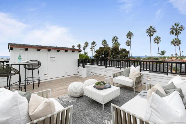 New Construction in La Jolla steps to the sand, Windansea Surf & Village! Experience the ultimate luxury 'Lock-and-Go' coastal lifestyle in this brand-new 5-bedroom beach house offering seamless indoor-outdoor living from the private California Room complete with a brick gas fireplace, TV niche, and built-in BBQ to relax after a day in the sun. Designed for effortless coastal living & multi-generational hosting, this home features an elevator to all levels including the rooftop deck with ocean views and lower level media game room for endless entertaining complete with a wet bar, vertical wine column and beverage fridge. Spanning approximately 3,538 sq ft, this residence showcases exceptional craftsmanship, alder beamed ceilings, and custom millwork throughout. Sustainability meets sophistication with Solar, Tesla Powerwall, EV charging and CONTROL4 Smart Home A/V/Lighting/Security integration PLUS the gourmet Thermador lined kitchen includes a separate walk-in prep pantry with its own sink and dishwasher—ideal for entertaining. Each Bedroom & Bathroom feels like a private spa retreat, wrapped in natural stone slabs, Kohler fixtures and designer tilework. Vaulted Alder-beam ceilings, warm interiors, and coastal contemporary architecture come together to create a truly rare La Jolla living experience—where every detail has been curated for comfort, elegance, and ease. Ideally positioned west of La Jolla Boulevard in the coveted Beach Barber Tract—just steps from Windansea Beach, La Jolla Village restaurants, the Sunday farmers market, and boutique shops. SEE MORE FLOORPLAN & CRAFTSMANSHIP. Attention to detail defines this new construction in La Jolla, showcasing sleek black-and-white lines, copper accents, and custom washed brickwork surrounding the lush private entry, backyard, and covered California Room with outdoor fireplace, TV niche, and BBQ. Inside, the Living/Kitchen area impresses with vaulted beam ceilings, tongue-and-groove millwork, and wide-plank oak flooring throughout. The chef’s kitchen features Alder cabinetry, a quartz-slab island, Thermador appliances (36” fridge, 48” six-burner range, Stanisci range hood), a Kohler farmhouse sink, and a walk-in prep pantry with its own dishwasher and sink. The lower-level media/game room is built for entertaining—complete with integrated A/V, surround sound, wet bar, 18” Thermador wine column for ~50 Bottles, and beverage fridge. Upstairs, the primary suite offers vaulted alder-beam ceilings, a custom walk-in closet ready to customize, and a spa-like bath with freestanding soaking tub, rainfall shower, dual vanities, and motion-lit mirrors. ADDITIONAL HIGHLIGHTS include a walk-in laundry room, solar with Tesla Powerwall, 2-car garage with EV outlet, BBQ cookstation, outdoor beach shower, and Control4 Smart Home + Lutron lighting system—a seamless blend of coastal charm and cutting-edge luxury.