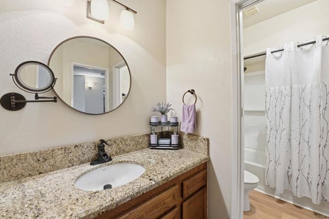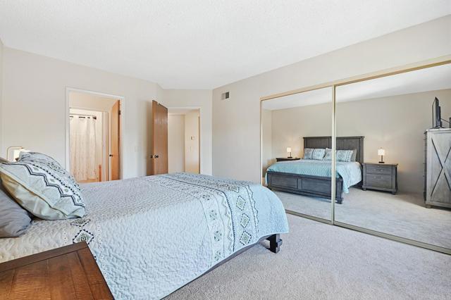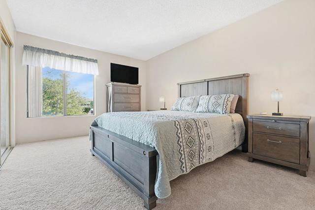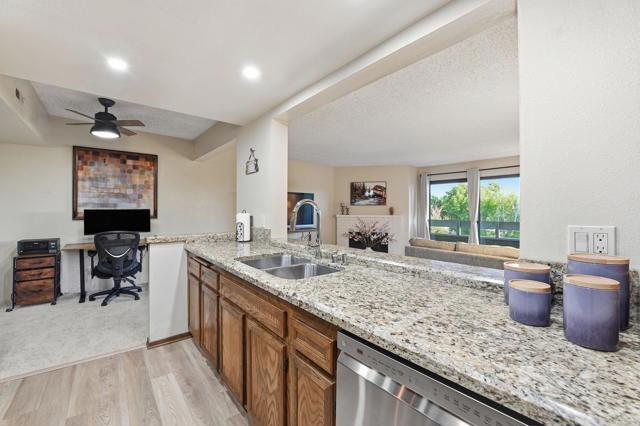Bright & Beautiful Top-Floor Condo in a Gated Community! Welcome home to this light-filled third-floor retreat where comfort meets convenience. Step inside to an open living space featuring fresh new flooring and cozy carpeting throughout. The inviting living room centers around a charming white brick fireplace and opens through double doors to a spacious patio, perfect for morning coffee or evening relaxation. The galley-style kitchen offers granite countertops, newer appliances, a double sink, and a generous passthrough to the living and dining areas, keeping the conversation flowing while you cook. The spacious primary suite features a large closet and an ensuite bath with granite countertops and a newly updated tub insert, creating a relaxing private escape. Enjoy the ease of two assigned parking spaces and a well-maintained community with lush green spaces, a sparkling pool and spa, clubhouse, trash chute and laundry facilities, all within a secure, gated setting with controlled access. Centrally located near freeways, shopping, restaurants, and just minutes from Downtown Escondido, this home blends everyday comfort with a vibrant, connected lifestyle.