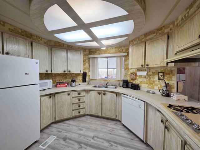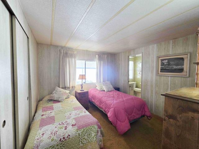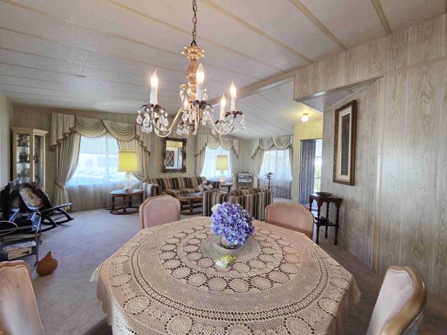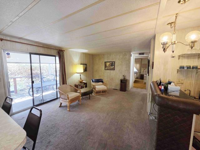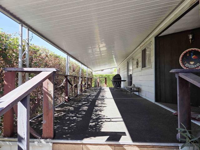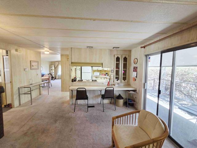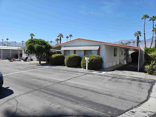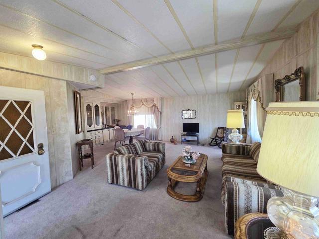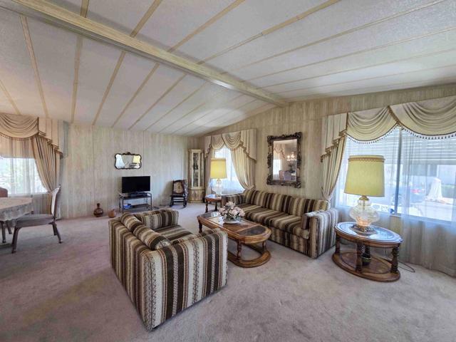 Located in the Royal Palms 55+ community, 316 Little Deer, a 1977 Fleetwood manufactured home with 1440 sq. ft., two bedrooms and two bathrooms, offers incredible space and value. Entry into this lovely home is from the large south-facing deck into the expansive beamed-ceiling formal living room (spanning the entire width of the home), complete with lush draperies that adorn each window. The dining area with built-in cabinetry leads to the open plan, semi-circular kitchen equipped with a gas range, fridge and a counter-top convection oven. Beyond is the spacious den, complete with wet bar, that provides access to the deck via a double-door slider. Opposite is the laundry area with side-by-side full size W / D with overhead storage. The adjacent guest bathroom leads into the spacious guest bedroom with large reach-in closet. At the west end of the home is the large and bright primary bedroom suite with expansive walk-in closet and a ensuite bath with separate shower, garden tub and linen closet. The home has an HVAC system and an evaporative cooler in the primary bedroom. Tandem parking is under the carport awning; there is also a large shed on the premises. All furniture and furnishings will transfer with the home save for clothing and select personal items. Space rent for the new owner will be $892.00 per month, though that figure must be verified by the buyer. Approval by park management at the Royal Palms is, or course, required for purchase.