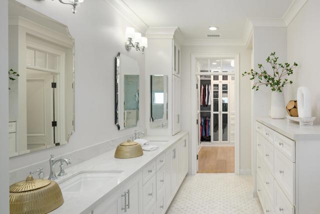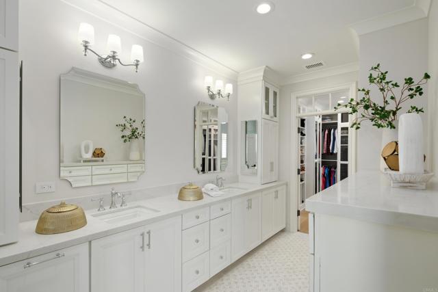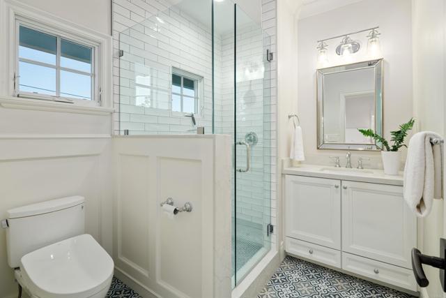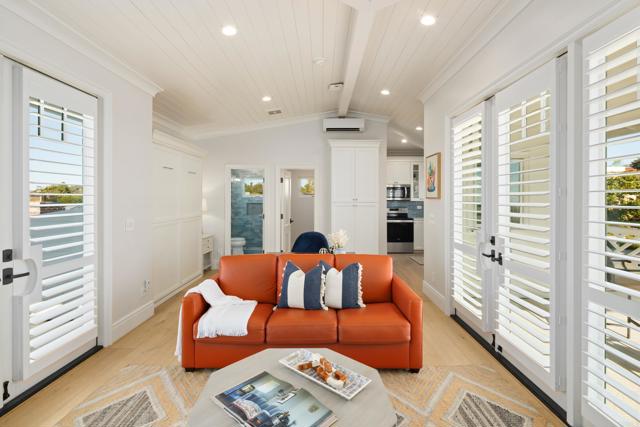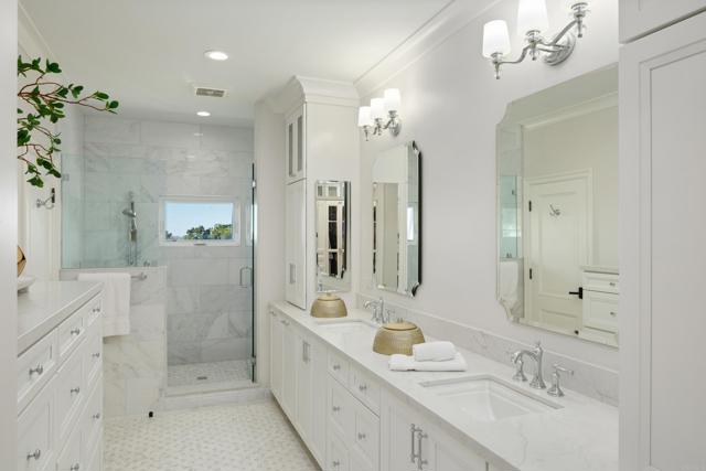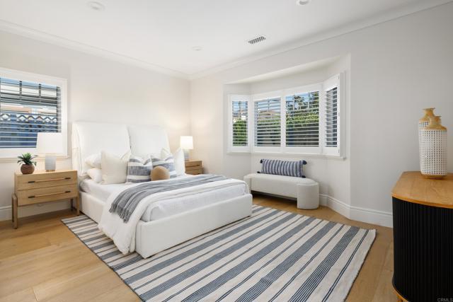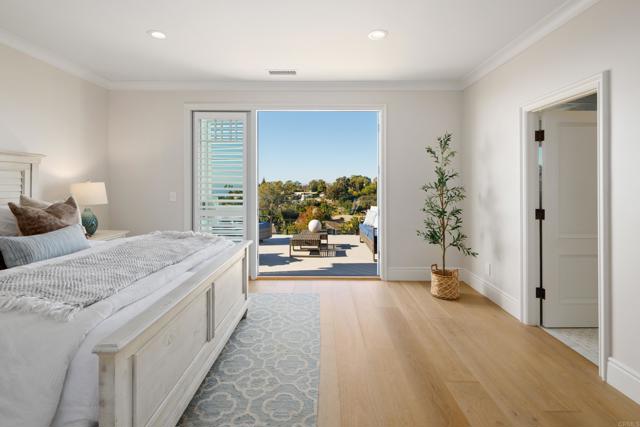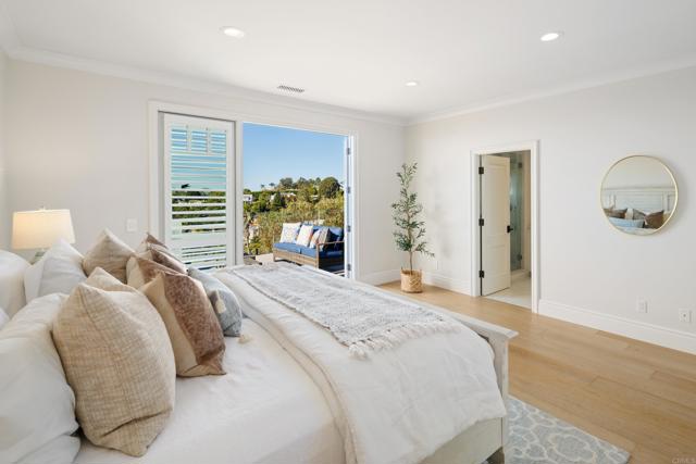 Experience comfort & luxury in this newly remodeled contemporary Hampton-style home featuring 4 bedrooms, 4.5 baths, and an expansive open-concept layout designed for modern living. The main residence is single-level with a spacious great room and well-equipped gourmet kitchen anchored by a large island that flows effortlessly out onto the newly-built TimberTech rear deck. You will enjoy breathtaking panoramic ocean and canyon views from both the great room and the custom pergola-covered deck. High ceilings with transom windows, French doors, and plantation shutters fill the home with natural light. French Oak wood flooring extends throughout, complementing the home’s coastal charm. Generous wall spaces and custom lighting provide ideal areas to display art, adding a refined touch to the interiors. Each spacious bedroom includes built-ins and ensuite bathrooms featuring custom tilework and natural stone finishes for timeless elegance. Upstairs is a generous ADU that offers a full-size kitchen, bath, and walk-in closet—perfect for guests, extended family, or rental income potential. The ADU has a separate entrance for privacy as well, and amazing views to both the north and south. This home beautifully blends comfortable luxury and modern sophistication, accentuating La Jolla's desirable lifestyle with impeccable craftsmanship and unforgettable views.