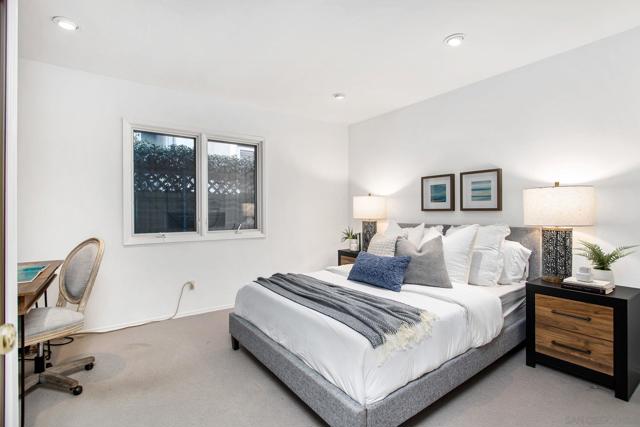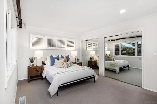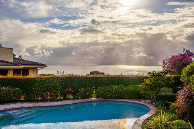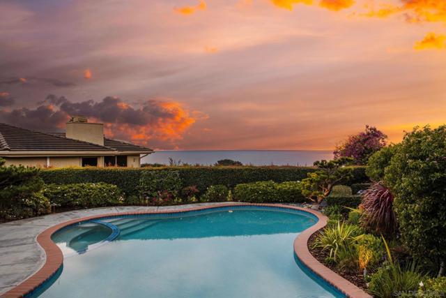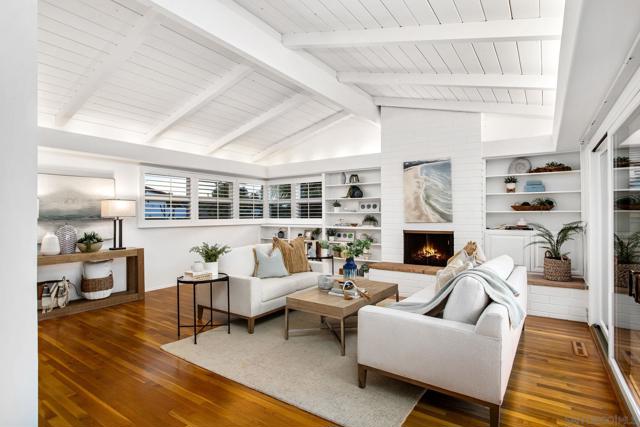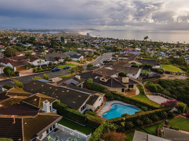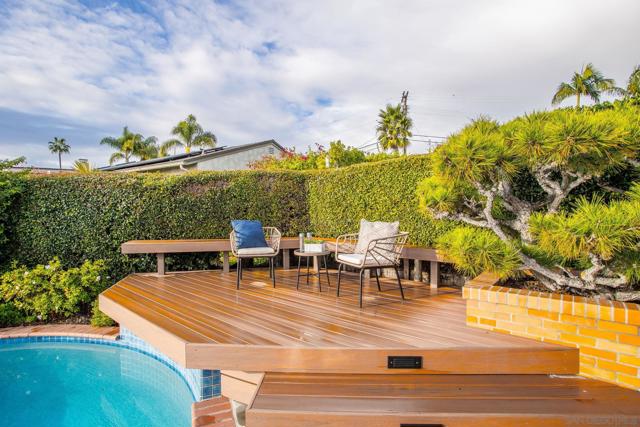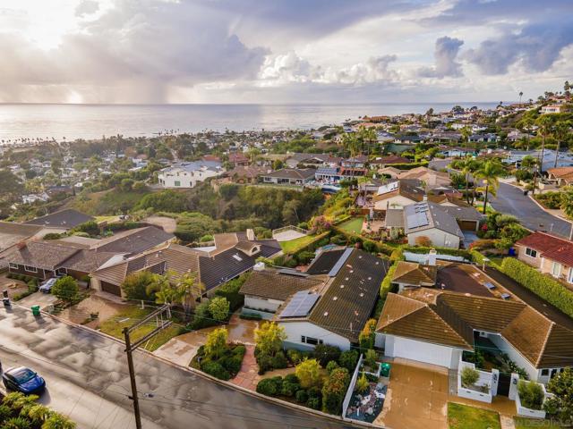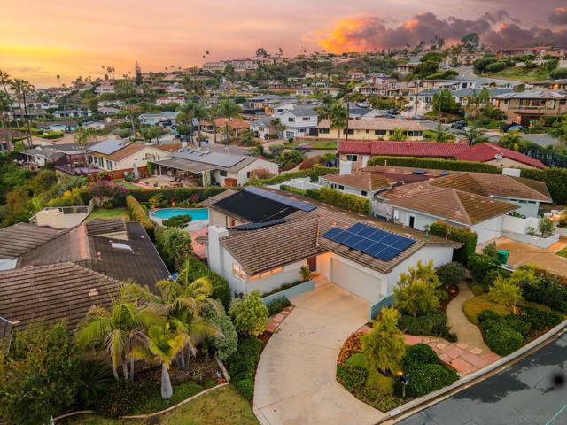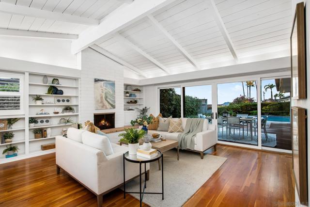 It doesn’t get better than this single-level La Jolla home, ideally situated at the top of a quiet cul-de-sac above Bird Rock! On the market for the first time in over 40 years, this residence offers a rare combination of prime location, thoughtful updates, abundant natural light, and ocean views. Inside, a spacious living room welcomes you with hardwood floors, vaulted ceilings, plantation shutters, and large sliding doors that create seamless indoor–outdoor living. The well-appointed kitchen features custom solid cherry cabinetry, granite countertops, premium stainless steel appliances, a built-in Sub-Zero refrigerator, recessed lighting, and a gas cooktop. A cozy adjoining family room—also showcasing custom cherry cabinetry—opens directly to the home’s private backyard retreat. The front and backyard create a beautifully designed oasis ideal for year-round enjoyment. Relax by the newly resurfaced pool and attached spa or on the updated deck, surrounded by mature landscaping designed by Todd Fry. A poolside waterfall and landscape lighting in both the front and back enhances the resort-style ambiance and sense of privacy. Additional upgrades include owned solar panels, dedicated solar pool heating, updated windows throughout, a replaced and insulated roof (2009), and a newer A/C system with upgraded air ducts. Don’t miss this rare opportunity to make this beautifully maintained La Jolla property your own.