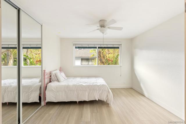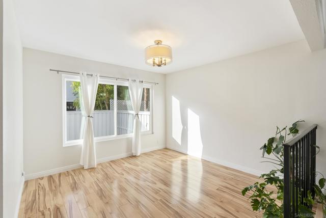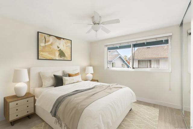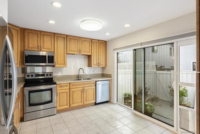 Beautifully remodeled Southpointe townhome in La Jolla Village. This inviting 3BD/3BA home was fully upgraded in 2016 with over $125,000 in improvements, including maple wood flooring on the main level, double-pane AMSCO windows, and a cozy fire pit in the living room. The updated kitchen features custom maple cabinetry, stainless-steel appliances, and upgraded plumbing, lighting, and electrical finishes. Enjoy a private patio surrounded by lush greenery—perfect for relaxing or outdoor dining. Upstairs, the bright primary bedroom offers a built-in closet and en-suite bathroom. Additional highlights include custom laundry in the attached garage and strong rental potential, with the home recently leased for $5,250/month. Located near community amenities, UCSD, shopping, dining, beaches, and major commuter routes—offering exceptional convenience in a highly desirable neighborhood.