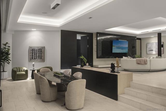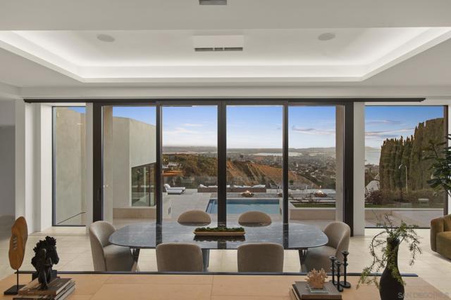 Recently remodeled to perfection, this uber luxurious custom contemporary offers a striking panorama of ocean, bay and City views. Setting the bar high with top-of-the-line amenities, appliances and designer elements, the home’s interior spaces offer high ceilings to maximize scale without sacrificing intimacy. Living spaces are oriented to the captivating views while a nuanced interplay of sunlight enlightens the home’s modern aesthetic. Privacy abounds throughout the property, providing an exceptional foundation for intimate or large-scale gatherings. The home’s expansive exteriors offer a plethora of opportunities in which to play, relax, and congregate. Three firepits surround the sparkling pool and spa denoting the entertaining terrace as an ideal place to gather for meals, amusement and conversation. A flexible guest house acts as a residence for extended stays, workspace, or private studio. Anchored by views that cannot be replicated, this special home embodies the highly sought-after La Jolla lifestyle.