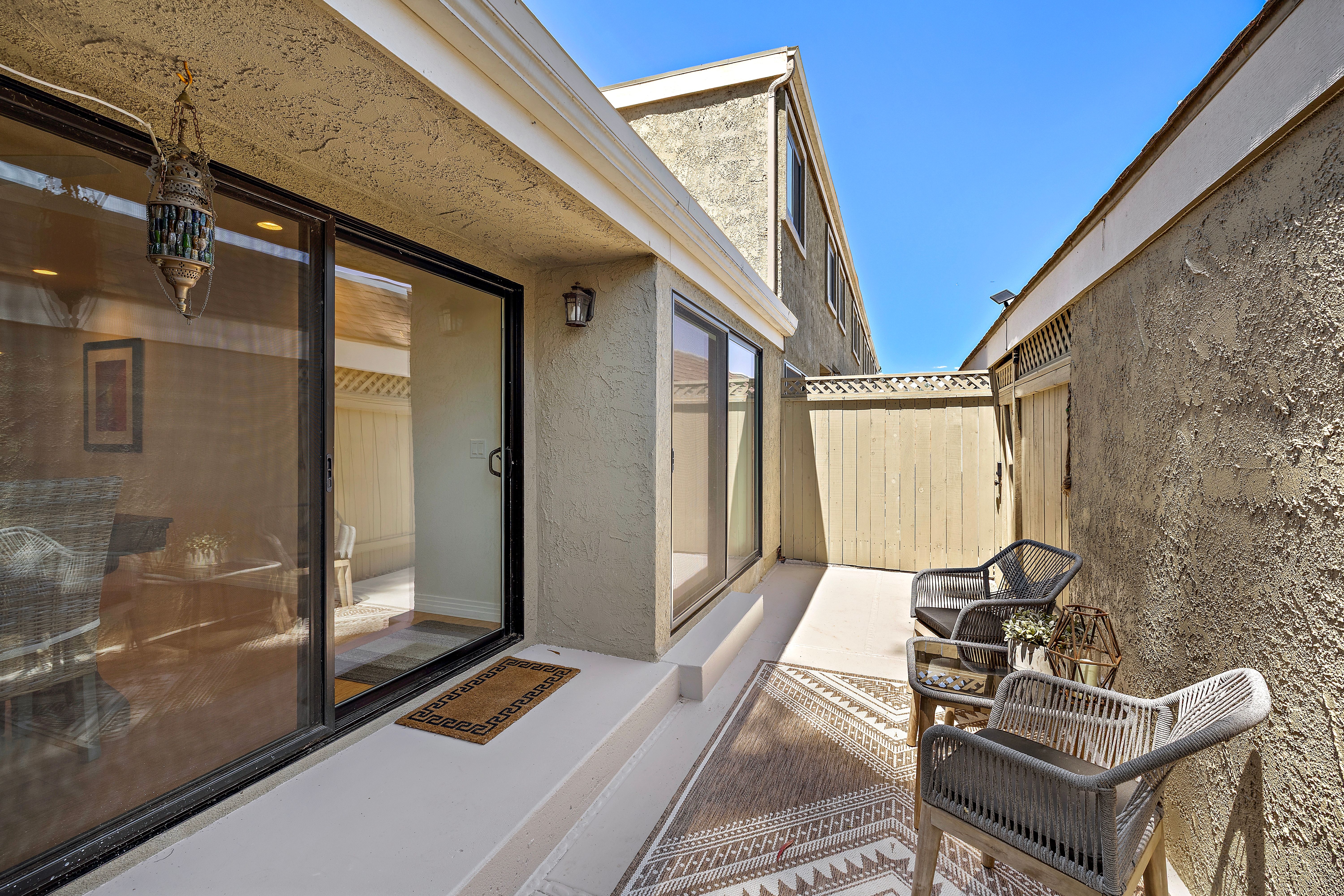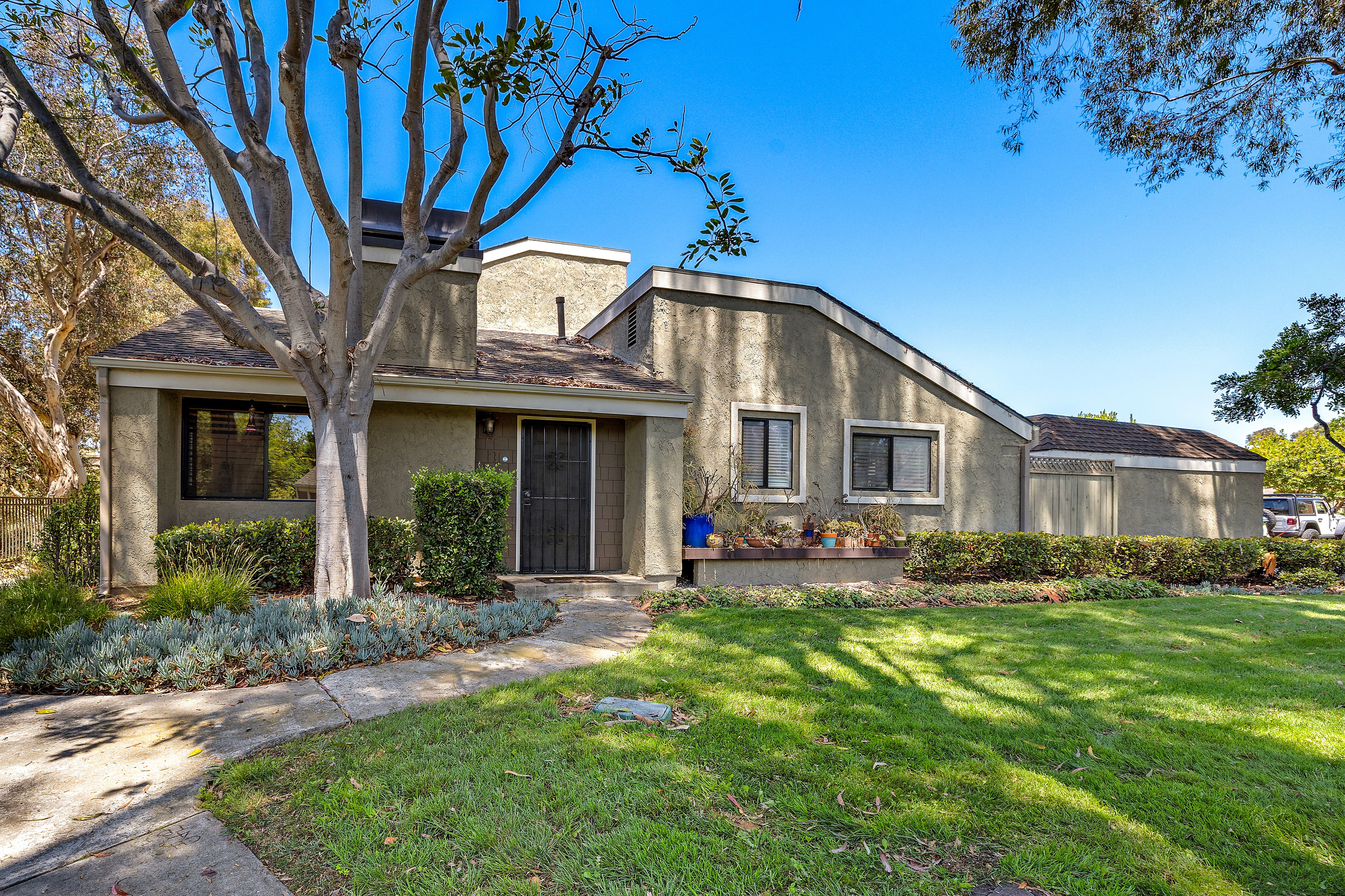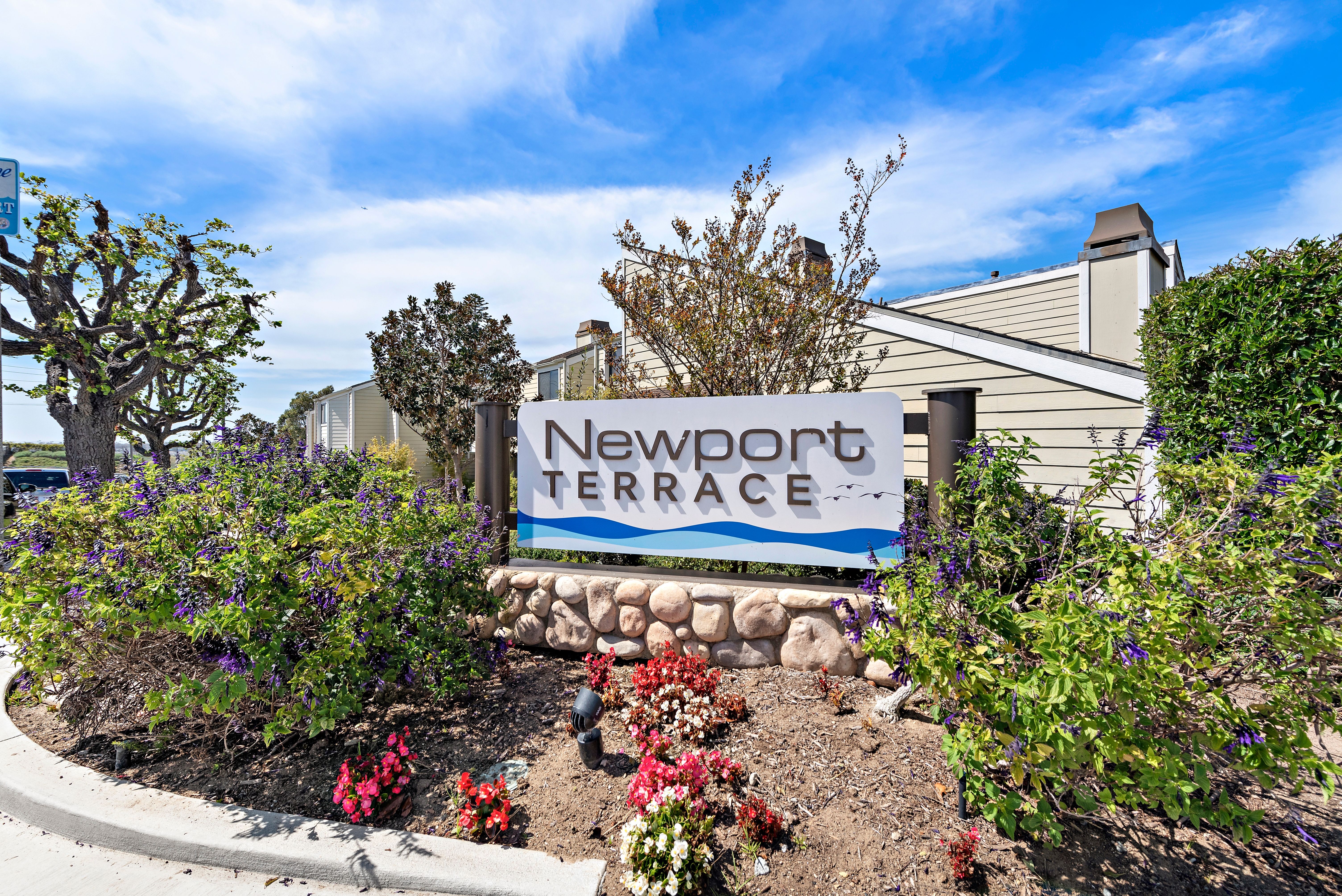 Welcome to 1 Starfish Court, a stunning and rare single-story end-unit in the coveted Newport Terrace community, ideally positioned for privacy and surrounded by mature birch trees that create a very special and tranquil natural setting. This unique and rare gem is a thoughtfully upgraded 2-bedroom, 2-bathroom featuring new bamboo flooring throughout, vaulted ceiling channeling privacy and natural light with interior laundry. The open living area includes a stacked stone fireplace and flows into a fully remodeled kitchen with GE Café appliances, fine wood cabinetry and stone countertops. Dual sliding glass doors lead to a private patio, perfect for relaxing, entertaining as well providing direct access to your 1 car garage and carport. The primary suite offers high ceilings, additional direct patio access, including generous closet space, while the second bedroom will offer up flexibility for guests or a home office. Bordered by the Talbert Nature Preserve and Canyon Park, Newport Terrace surrounds itself with miles of trails, bike paths, with direct access to the Santa Ana River Trail leading to the beach. Community amenities include two pools, a spa, sport court, and lush green spaces surrounded by mature trees, a coastal setting that feels private yet connected. Welcome to 1 Starfish Court delivering an exceptional blend of location, privacy, and tranquility!