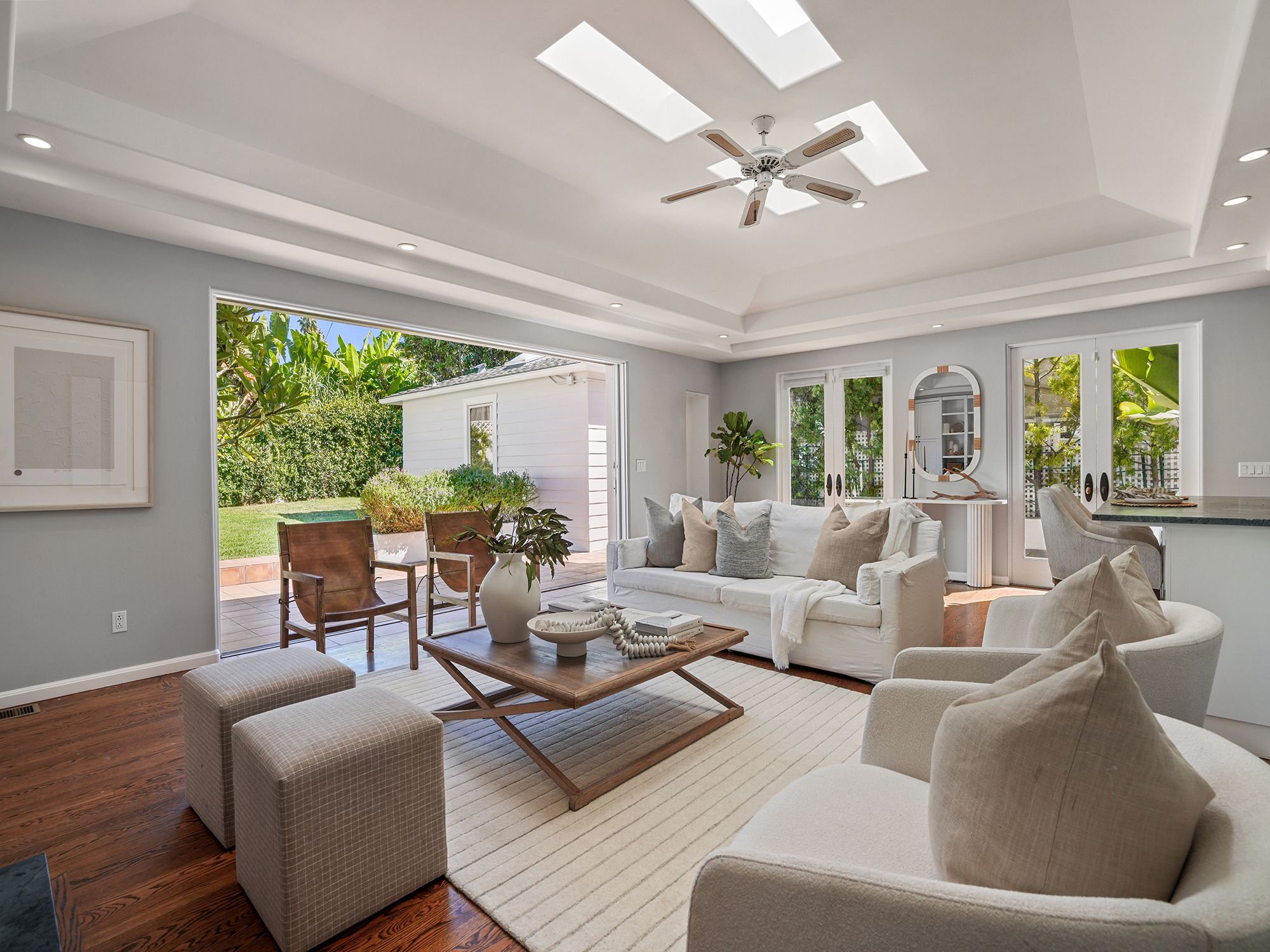 Unmatched walkability in this beautifully renovated Cape Cod style home in the heart of Bird Rock. Expanded with a second story in 2019, the residence blends timeless character with modern livability, offering four bedrooms, three-and-a-half baths, and a versatile bonus space with its own bath in the converted garage. Inside, bright, open spaces flow effortlessly for both everyday living and entertaining. Skylights and wide glass doors fill the home with natural light, connecting the chef’s kitchen, formal dining room, and inviting living area to a private patio for seamless indoor-outdoor living. The home is equipped with dual-zone heating and air conditioning, providing personalized comfort on both levels. Upstairs, the second level reveals gentle ocean glimpses, adding a touch of coastal charm to the space. Outside, classic curb appeal shines with a white picket fence, brick walkway, and welcoming front porch. The landscaped yard offers space to relax, complete with a storage shed and mature plumeria tree. Just a block from Bird Rock’s shops, cafés, bike path, and the beach, this home enjoys exceptional walkability and access to top-rated schools and La Jolla’s spectacular coastline. This is a rare opportunity to own a move-in-ready gem in one of the area’s most desirable enclaves.